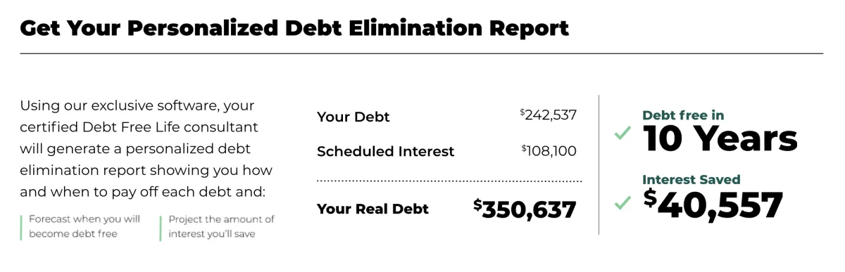 Learn more about your debt and scheduled interest in your personalized debt elimination report.